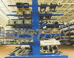 悬臂式货架适合存放长短不一的板条形货物,如钢板、钢管、长箱体等。可根据现场状况设计成单面悬臂或双面悬臂,悬臂末端可安装挡块防止斜物滚落。